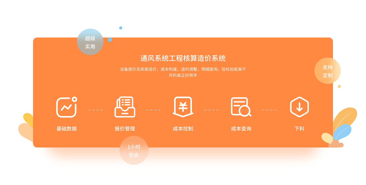 包括風(fēng)機(jī)閥風(fēng)口簡易報(bào)價(jià)、風(fēng)機(jī)閥風(fēng)口成本核算報(bào)價(jià)、通風(fēng)管道安裝成本核算報(bào)價(jià)、風(fēng)口噴塑計(jì)算報(bào)價(jià)、盤管柜機(jī)成本核算報(bào)價(jià)、組合式空調(diào)機(jī)組核算報(bào)價(jià)、表冷器成本核算報(bào)價(jià)等軟件。